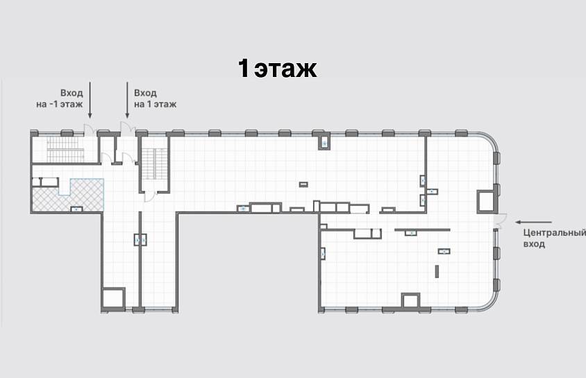 Общая площадь: 1232,8 м2 (-1 этаж: 726,2 м2; h: 3,8 м; 1 этаж: 506,6 м2; h: 4м)