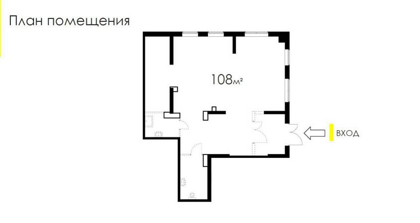 Угловое помещение, 1 вход, 1 мокрая точка, панорамные окна.