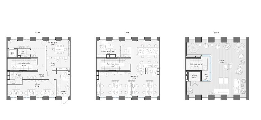 Роскошный 2-х этажный офис 312 кв.м с открытой террасой 111,8 кв.м. на крыше.