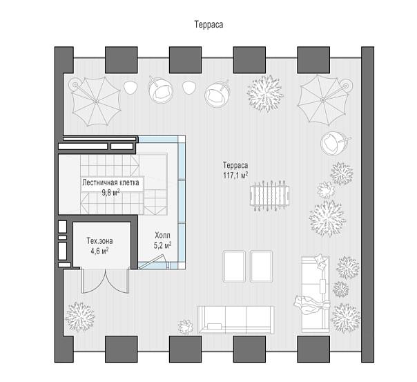 и санузлы, а собственную террасу можно использовать в качестве воркаут-зоны или